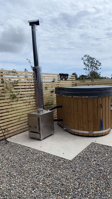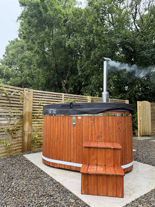 The Lodge has its own private wood burning hot tub. Dog friendly