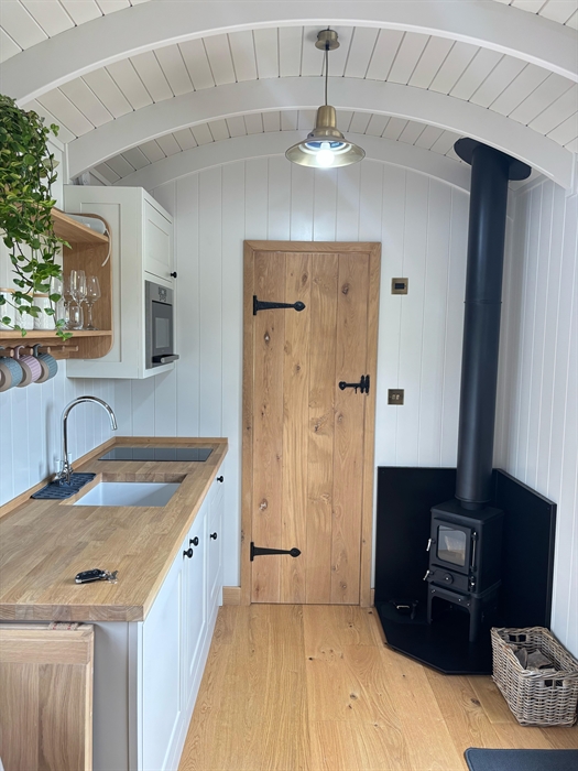 Inside, you’ll find everything you need for a comfortable stay, including a fully equipped kitchen and a stylish bathroom with a walk-in shower. The separate double bedroom offers stunning countryside views and a skylight that’s perfect for a little stargazing before bed.