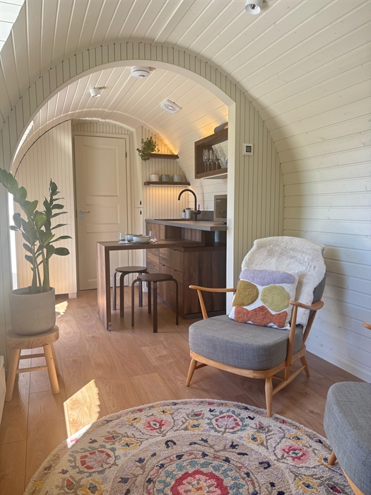 Our spacious and modern glamping pod, set in its own secure, private area with parking right outside.