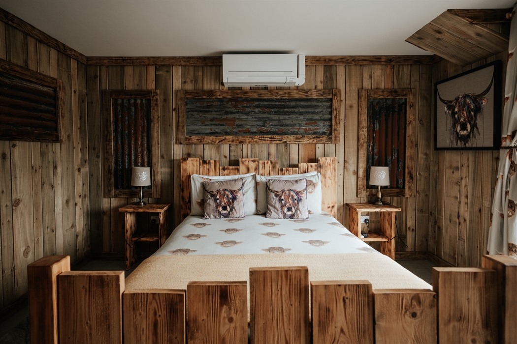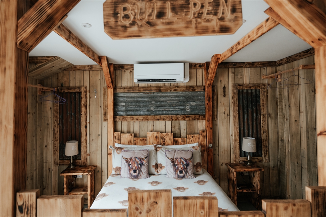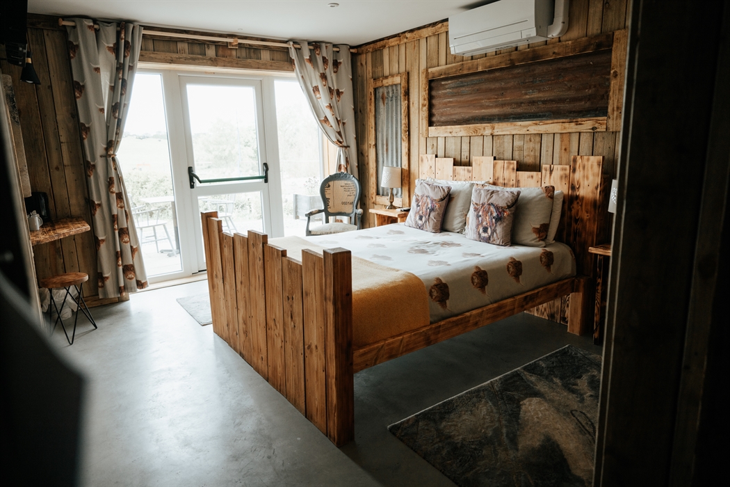 Our accommodation is designed to suit your every need. With 11 purpose-built rooms with outside patio table and chairs, the Moo-Tel has everything you need for the perfect getaway with your partner, pooch, family, friends or all 4 together! Each room is equipped with bespoke, handmade beds with bed linen and towels, free Wi-Fi, a kettle, flat screen TV and an en-suite bathroom.
