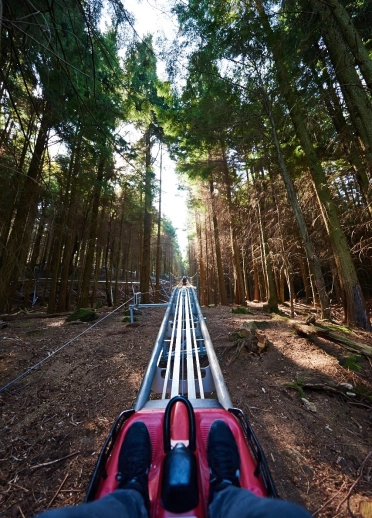 Wenn Sie waghalsiger sind, spüren Sie die Angst und erleben Sie das erste Tandemfall-Abenteuer der Welt, Plummet 2, von einem 30 m hohen Turm. Skyride 2 ist die höchste Riesenschaukel Europas, und schließlich gibt es noch die aufregende 1 km lange Fahrt mit dem Fforest Coaster durch den Wald. Der erste Teil des Erlebnisses ist herrlich entspannend: Sie lehnen sich zurück und beobachten den Himmel durch das Blätterdach des Waldes, während Sie zum Startpunkt hochgezogen werden. Dann lässt man oben einfach die Bremsen los – und schon startet die intensive, atemberaubende Fahrt zurück nach unten.
