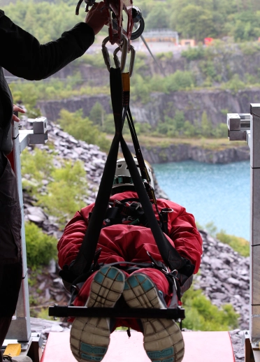 Die Herzen der Teilnehmer schlagen wie wild, wenn sich der rote Armeelaster mit seiner Ladung voll ängstlicher Flugschüler hinauf zum Startplatz hoch über dem Steinbruch schlängelt. Die Aussicht von hier über den Eryri (Snowdonia) Nationalpark bis zur Insel Anglesey ist atemberaubend. Doch dafür haben die wenigsten Muße, bevor sie sicher angeschnallt und am Drahtseil hängend in 150 m Höhe und mit über 160 km/h durch die Luft sausen. Unten angekommen, wollen eigentlich alle das Ganze sofort wiederholen.