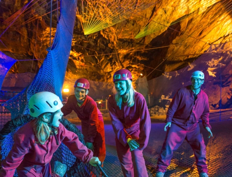 Bei Zip World Llechwedd Adventures werden verschiedene Aktivitäten für alle Altersgruppen angeboten. Bei der Deep Mine Tour geht es mit Europas steilster Seilbahn 150 m in die Tiefe. Hier erfahren die Teilnehmer mehr über die harten Arbeitsbedingungen in den Scheiferminen im 19. Jahrhundert und über das industrielle Erbe der Gegend.