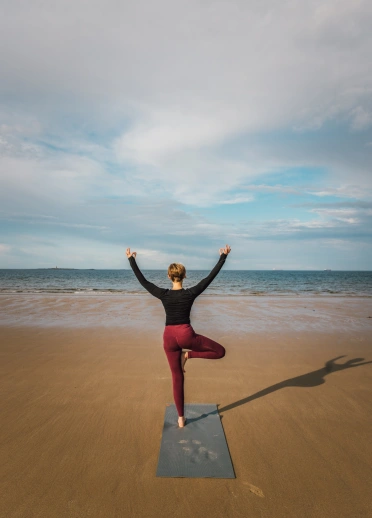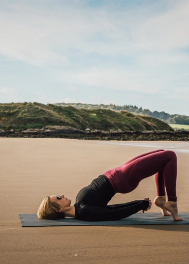 Empfohlene Pose: Kobra. Nutzen Sie den feinen, von der Sonne erwärmten Sand als Untergrund und arbeiten Sie an Ihrer Dehnung im Rücken.