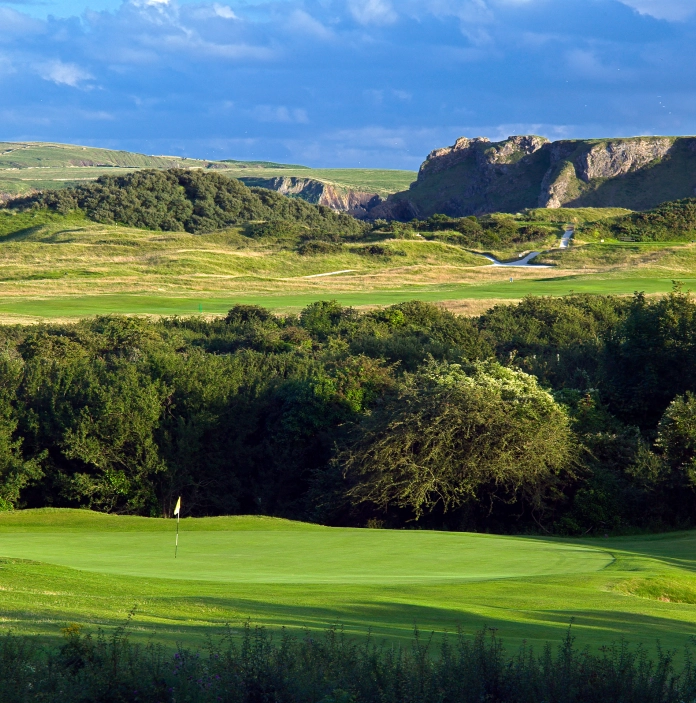Es dauert nicht lange, um zu verstehen, warum der Pennard Golf Club als „The Links in the Sky“ bekannt ist. Obwohl die Hügel, Dünen und Anhöhen alle Merkmale eines klassischen Links Course aufweisen, liegt er in Wirklichkeit 200 Fuß über dem Meeresspiegel und bietet atemberaubende Ausblicke auf die Bucht Three Cliffs Bay auf der Halbinsel Gower. Der Golfplatz von Pennard wird der Umgebung gerecht, mit von Ginster gesäumten, windgepeitschten Fairways, die immer wieder neue Herausforderungen mit sich bringen. Ein besonderes Highlight ist das 7. Loch, ein Par 4, mit einem Drive zwischen einer Kirchenruine aus dem 13. Jahrhundert und den Überresten einer hoch auf den Klippen gelegenen Burg aus dem 12. Jahrhundert hindurch.
