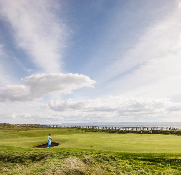 Wer auf der Suche nach dem wahren Links-Course-Erlebnis ist, für den ist der Royal Porthcawl Golf Club ein Muss. Der Austragungsort der Senior Open Championships 2014, 2017 und 2023 ist der Inbegriff eines klassischen Linksplatzes. Unmittelbar am Meer erfordern die wechselnden Fairways konzentrierte Präzision und mit Löchern, die in alle Himmelsrichtungen ausgerichtet sind, müssen die Spieler ihren Ansatz ständig anpassen, um dem Westwind Rechnung zu tragen, der vom Bristol Channel herüberweht.