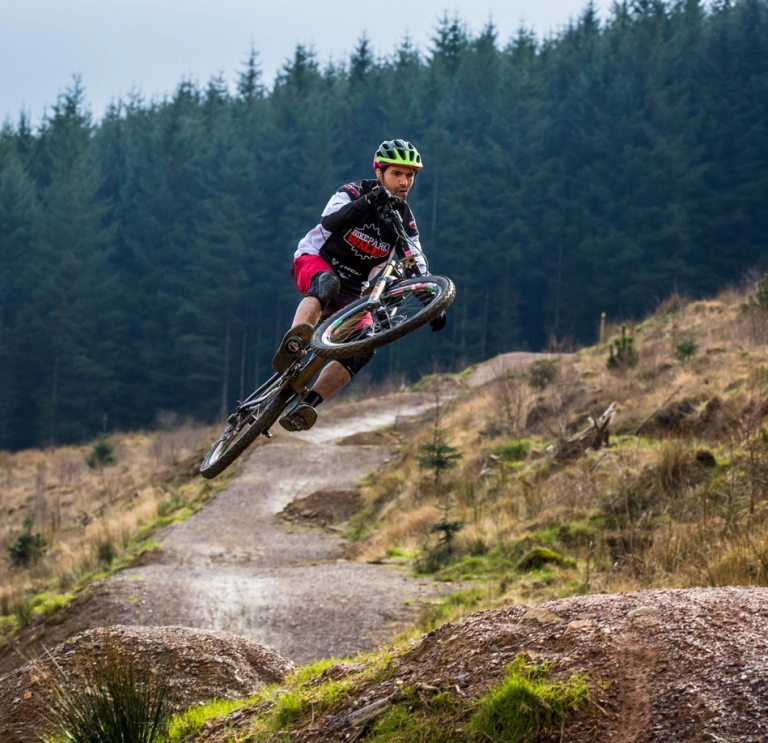 Die Trails am Berg stellen selbst für die selbstbewusstesten und erfahrensten Fahrer eine Herausforderung dar. Die Trails sind von blau bis schwarz eingestuft, ähnlich wie eine Skipiste in den Alpen, sodass es einfach ist, die passende Strecke zu finden. Wir haben einige der längsten Downhill-Strecken in Wales, für die selbst geübte Fahrer bis zu 15 Minuten benötigen. Am schwersten sind die roten und schwarzen Strecken im BikePark Wales mit großen Sprüngen und Drops, über Wurzeln und Felsen – eine unglaubliche Herausforderung.