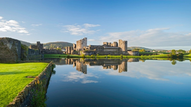 In Wales gibt es unzählige Burgen und Schlösser, aber Caerphilly Castle ist die größte und wohl auch schönste von allen. Gebaut im 13. Jahrhundert steht die imposante Festung, umgeben von einem riesigen Burggraben, im Zentrum des kleinen, gleichnamigen Städtchens. Ein Turm der Anlage ist schiefer, als der von Pisa. Erdacht hat die Burg der rothaarige Adlige Gilbert „der Rote“ de Clare, der auch Castell Coch etwas außerhalb von Cardiff erbauen ließ.