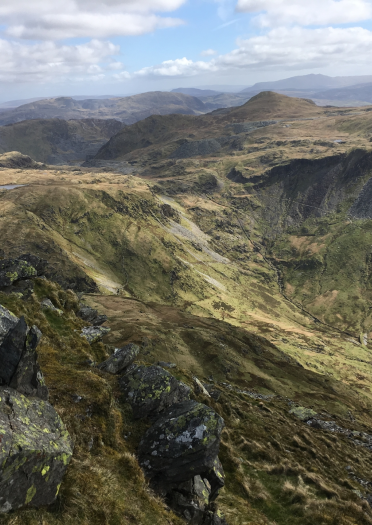 Nachdem das Dörfchen Y Fron passiert wurde, führt der Weg durch die eindrucksvollen Überreste des Dorothea-Steinbruchs, in dem zwischen den 1820er Jahren und seiner Schließung 1970 bis zu 350 Bergleute beschäftigt waren. Von dort aus geht es hinunter ins Nantlle Valley um den See Llyn Nantlle Uchaf herum und weiter dem Fluss Drws-y-coed folgend. Von dieser Seite hat man einen schönen Blick auf den Berg Mynydd Mawr. Der letzte Abschnitt der Route führt über den Hügel und durch einen Wald hinunter in den Ort Rhyd Ddu.