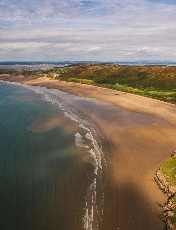 Einen unserer Stars dürfen wir natürlich nicht vergessen, nicht wahr? Der goldene Sand am 4,8 km langen Strand von Rhossili bietet sogar ein echtes Schiffswrack und wenn Sie die Gezeiten richtig abpassen, können Sie sogar einen wunderbaren Spaziergang zur Landzunge unternehmen, die unter dem Namen ‚Worm’s Head’ (Drachenkopf) berühmt ist.