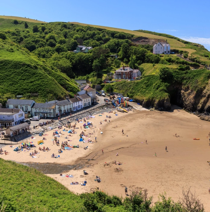 Llangrannog ist ein winziger Küstenort, eine Ansammlung von Häusern, die sich in ein schmales Tal quetschen und ein wenig von den Wellen umspült werden. Der Küstenpfad schlängelt sich durch Wiesenblumenfelder, die im Sommer voller Schmetterlinge sind. Eine idyllische Bucht an der Westküste von Ceredigion.