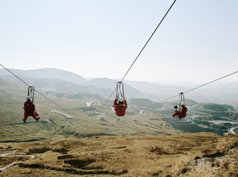 Eryri (Snowdonia) ist sozusagen das Abenteuerzentrum von Großbritannien, und das vor allem weil umtriebige Unternehmer die Idee hatten, die großartige Landschaft um einige spektakuläre Attraktionen zu bereichern. Einige sind ganz schön verrückt, wie etwa die schnellste Zipline der Welt im Abenteuerpark Zip World, die unterirdischen Rutschen und Trampoline von Bounce Below oder die einen Kilometer lange Sommerrodelbahn Fforest Coaster.