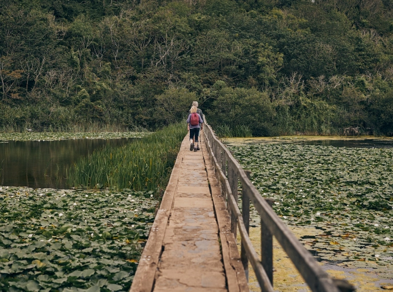 Der Sechs-Meilen-Rundweg zwischen Stackpole und Bosherston bietet alles, was die Natur von Pembrokeshire im Frühsommer ausmacht. Es gibt Klippen, Dünen, zwei unserer schönsten Strände (Barafundle und Broadhaven South), Wildblumenwiesen, Wälder und Süßwasserseen. Die Bosherston Lily Ponds (Seerosenteiche) stehen im Juni und Juli in voller Blüte. Während sich die ansässigen Otter aber mehr für die Aale, Hechte, Barsche, Rotaugen und Schleien interessieren, die in den Gewässern leben, schweben über 20 Arten von Libellen und Kleinlibellen über ihnen.