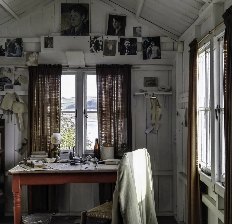 Sein Werk „Porträt des Künstlers als junger Hund“ schrieb er in der Sommerlaube der Burg mit weitem Blick über die Taf-Mündung. Das Boathouse, in dem mit seiner Frau Caitlin und den Kindern lebte, ist bis heute fast unberührt, wie auch die kleine Schreibstube, untergebracht in einem Schuppen, in der seine Notizen auf dem Schreibtisch verstreut liegen, als sei er nur mal kurz auf einen Drink in Brown's Hotel gegangen, seinen Lieblingspub, der nur einen kurzen Spaziergang entfernt im Dorf liegt.