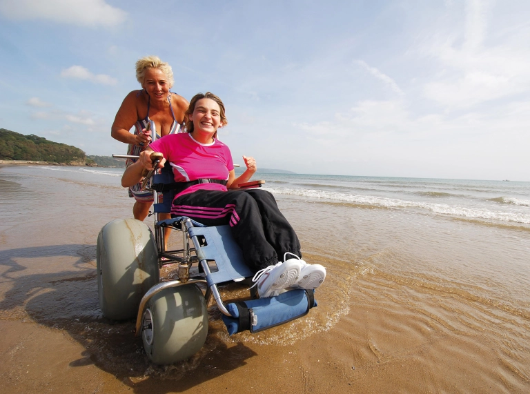 An vielen Orten entlang unserer Küste kann man Strandrollstühle mieten. Mit ihren geländegängigen Rädern geben sie Rollstuhlfahrern und Menschen mit eingeschränkter Mobilität die Möglichkeit, einige unserer schönsten Strände zu entdecken.