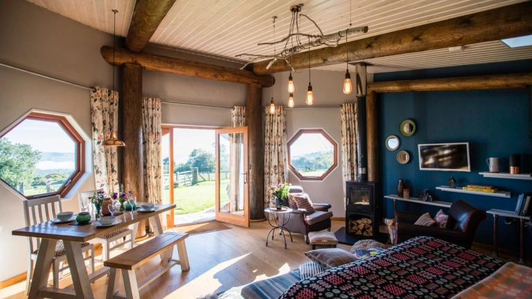 Wir wollten unbedingt mal eine Glamping-Unterkunft ausprobieren und sind in den achteckigen, hobbitwohnungsartigen Eco Cabins der Treberfedd Farm in Lampeter gelandet. Man glaubt, im Auenland aus Tolkiens »Der Hobbit« angekommen zu sein. Die Holzkabinen mit ihren grasbewachsenen Dächern sind einfach putzig. Sie erinnern etwas an überdimensionierte Saunen. Der Whirlpool, der vor unserer Cabin stand, tat sein Übriges für diesen Eindruck. Zum Glück war es im Inneren nicht ganz so heiß wie in der Sauna. Aber kuschelig genug, um es sich richtig gemütlich zu machen. Dann haben wir mit einem Tee in der Tasse in die grünen Hügel geschaut und gewartet, ob irgendetwas Spektakuläres passiert. – Passierte aber nichts. Außer sich zu entspannen gab es nichts zu tun.«