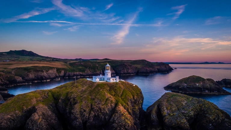 Dieser Leuchtturm steht auf einer kleinen Insel gegenüber der felsigen Landspitze namens Strumble Head an der Nordseite des Pembrokeshire Coast Nationalparks. Da sich die Gegend hier ganz hervorragend dafür eignet, Zugvögel, Wale und Delfine zu beobachten, tummeln sich in der alten Naturbeobachtungshütte gerne begeisterte Ornithlogen und Walfans.