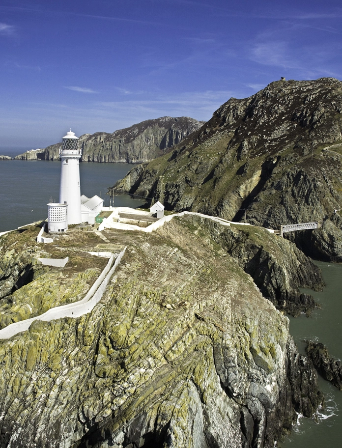 Dieser Leuchtturm ist vermutlich der am spektakulärsten gelegene unter allen Leuchttürmen in Wales. Er befindet sich an der südwestlichen Spitze der Insel Anglesey. Von Holy Island aus gelangt man über 400 Steinstufen auf eine winzige Insel, auf der man den 41 Meter hohen Turm bei Führungen besichtigen kann. Die umliegenden Klippen sind ein Landschaftsschutzgebiet, in dem man Wanderfalken, Dohlen und unzählige Meeresvögel beobachten kann.