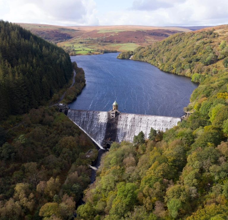 Die Stauseen und Dämme sind einige der imposantesten Beispiele viktorianischer und edwardianischer Architektur. Sie wurden erbaut, um die Trinkwasserversorgung von Birmingham zu sichern. Die Bauarbeiten begannen 1883 und dauerten bis zur Eröffnung der letzten Talsperre durch Königin Elisabeth II. im Jahr 1953. Insgesamt gibt es sechs Reservoire, vier davon werden vom Fluss Elan gespeist – Craig Goch, Pen y Garreg, Garreg Ddu und Caban Coch sowie zwei vom Fluss Claerwen – Claerwen und der nicht fertiggestellte Damm Dol y Mynach.