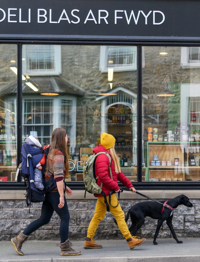 Wenn der kleine Hunger kommt, kann man ins Amser Da einkehren, das gemütliche Café des Delikatessengeschäftes Blas ar Fwyd, in dem köstliches Frühstück, Lunch und Snacks serviert werden. In der The Old Tannery / Yr Hen Danerdy (geöffnet Donnerstag bis Sonntag) gibt es ebenfalls Früchstück, Mittagessen sowie Kaffee und Kuchen und im The Eagles Hotel im Stadtzentrum kann man traditionell dinieren. Ein weiterer einladender und hundefreundlicher Ort ist das The New Inn, in das man auf ein Pint einkehren kann.