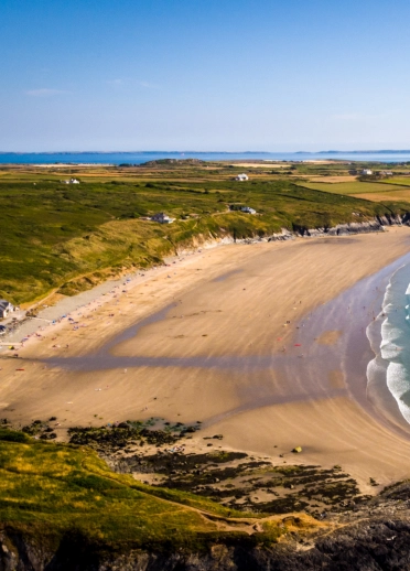 Whitesands Beach ist einer der beliebtesten Strände in Pembrokeshire, an der äußersten Südwestküste des Landes. Von seinem weitläufigen Sandstrand aus hat man einen herrlichen Blick aufs Meer und die Insel Ramsey sowie auf ihre kleineren Nachbarinseln. Strandrollstühle können online für die Nutzung des Strandes gebucht werden.