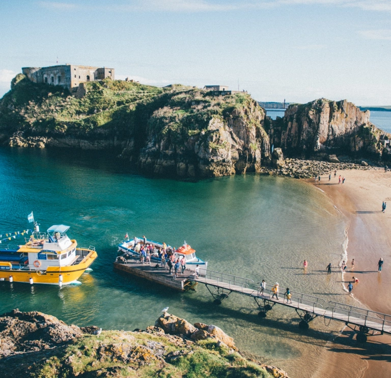 Nur eine 20-minütige Bootsfahrt von Tenby entfernt liegt die Klosterinsel Caldey Island, eine echte Oase der Abgeschiedenheit, in der man Meeresvögel beobachten und einen kleinen Strand zum Entspannen vorfindet. Die Insel, die von einer Gemeinschaft der Zisterziensermönche betrieben wird, ist im Sommer an Wochentagen und Samstagen für die Öffentlichkeit zugänglich. Am Hafen von Tenby starten regelmäßig Bootsausflüge (Tickets gibt es am Kiosk), die die Besucher direkt zum Priory Beach bringen, einem schönen Ort für ein Bad im Meer und Ausgangspunkt für die Erkundung der Insel.