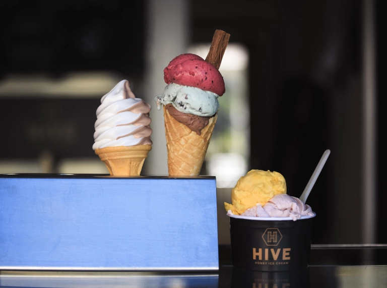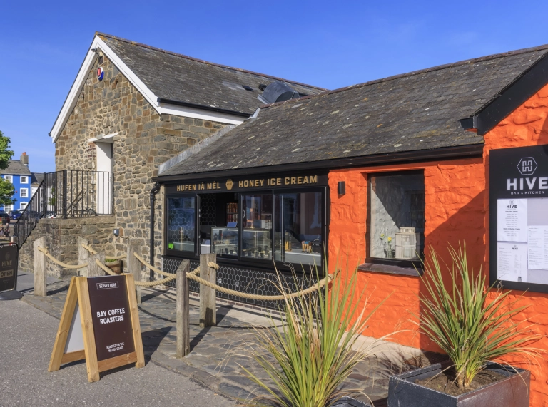Fresh fish and seafood are sold by the waterside here at The Hive, while squid, crab, pulled pork and steak feature on the restaurant menu. Sweet teeth are catered for in unique style with homemade honey ice cream (including a Turkish Delight version), and you'll be entertained by live music at the weekend.