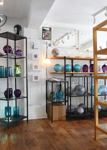 Admire and buy Kathryn Roberts’ bespoke glassware creations in her workshop gallery. When the furnace is on the public are able to glimpse through the galley's viewing window into the workshop. Kathryn's diverse little business currently produces blown glass giftware, one-off artworks and lighting. Antique glass repair / restoration commissions are undertaken. She has designed for the likes of Heals and Dartington Crystal in the past.