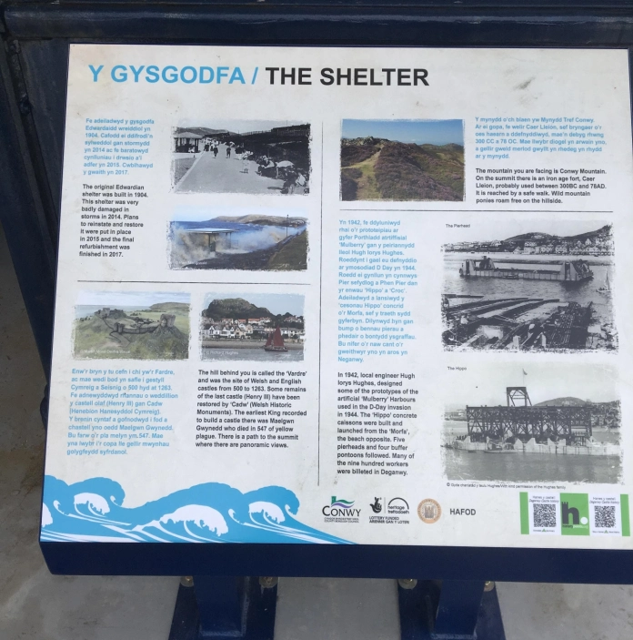 Three story-boards are located along the promenade, with one adjacent to the shelter, so visitors to the beach can learn about the history of Deganwy and the shelter. Each board displays a QR Code linked to the 'History Points' website which includes heritage information relevant to each board location.