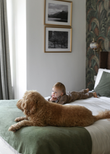 The scenic, gentle trail looped us back into the village, and, from here, it was only a short stroll to our accommodation. The grand Gwydyr Hotel, built during the 1800s, offers pet-friendly deluxe rooms with beautiful interiors and plenty of space for both our toddler and dog to be comfortable. It’s really important for us that Teddy feels as welcomed as any other guest and the staff at the Gwydyr Hotel treated Teddy like the fluffy king he is.