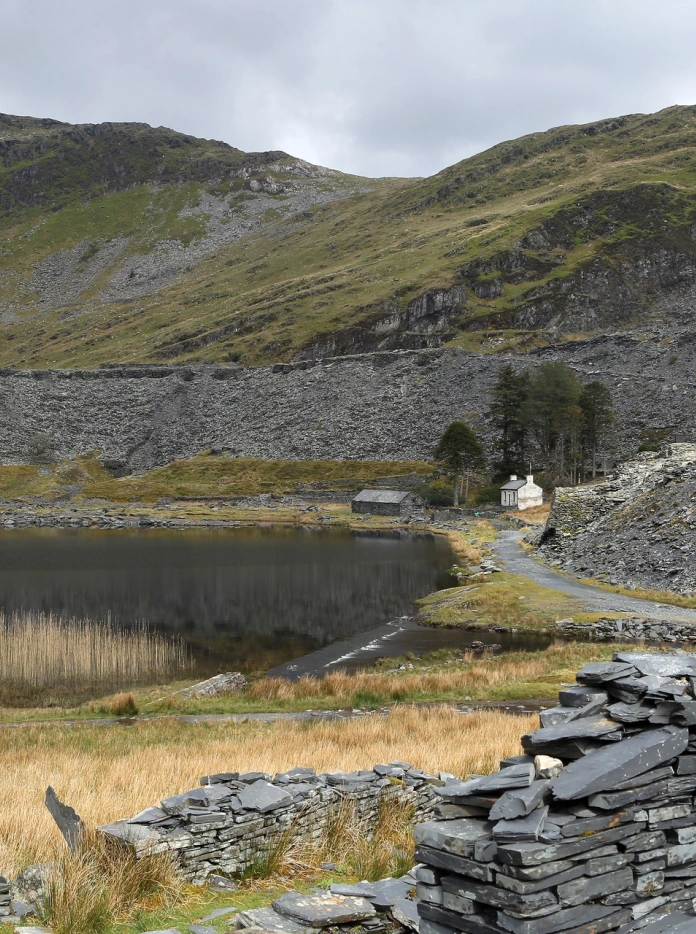 Come rain or shine, one of the town’s most spectacular walks is the short journey up to Cwmorthin, beginning in Dolrhedyn above the village of Tanygrisiau. There, you can see the ruins of the old houses of Cwmorthin Quarry, Plas Cwmorthin, and Rhosydd Chapel, and follow the shore of Cwmorthin Lake towards the end of the valley. On reaching the far end of the lake, the trail climbs up a steep incline – which is quite uneven and unsteady under feet – towards Rhosydd Quarry. More of the scars of the former community can be seen there, including the ruins of an old mill. From there it is possible to follow routes towards the summits of the Moelwynion. The Snowdonia Slate Trail passes through Stiniog, rising and falling through valleys and over mountains.