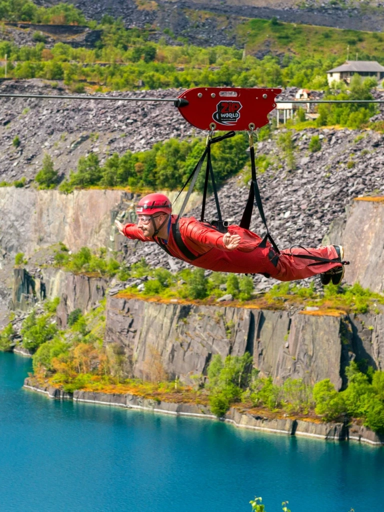 For instance, there’s the 100 mph Velocity 2, the world's fastest and Europe's longest zip line at Zip World Penrhyn Quarry. Velocity 2 features four parallel lines that span 1.5 kilometres over the beautiful blue water of Penrhyn Quarry lake. Here Quarry Karts, the UK's first mountain cart track, also offers gravity fuelled three-wheelers you navigate through chicanes, tunnels and a variety of other obstacles at up to 40 mph.