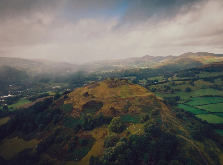 To round off the adventure, Chris hikes up to the romantic ruins of Castell Dinas Brân, perched high above Llangollen. He parked in a layby along the Panorama Walk road, and takes the shorter, but very steep, 700m trail to the top. The effort is worth it for the magnificent views back over Llangollen and towards the aqueduct - and a sensational sunset from the summit.