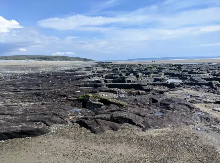 In low tide, the peat beds are exposed in the sand just to the south of the promenade - a long series of carefully cut out squares, like ancient homes, and dotted with the remains of a submerged forest. This place brings to mind the legend (though I choose to believe it's true) of Cantre'r Gwaelod, the story of an ancient and fruitful land that was lost to the sea. On a more practical and luxurious level, these peat squares capture sea water as the tide recedes, and by the end of a hot day, they create your very own natural hot tub.