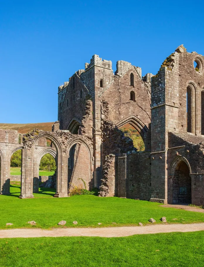 A short drive from Abergavenny lay the atmospheric ruins of Llanthony Priory. Built in the 13th century on the site of an older church, what remains today bears the scars of centuries of conflict and political upheaval. Despite all the drama, Llanthony Priory’s surviving windows and sweeping archways are still a powerful reminder of medieval Wales.