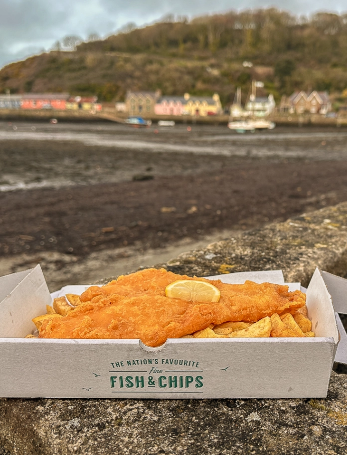 Perched opposite the Parrog, Dolphin Fish and Chips is a popular Goodwick chippy known for its freshly cooked cod and haddock, crispy amber-hued Pembrokeshire potato chips, and all the chip shop classics – including meat-free options like halloumi burgers, falafel wraps, and spring rolls.