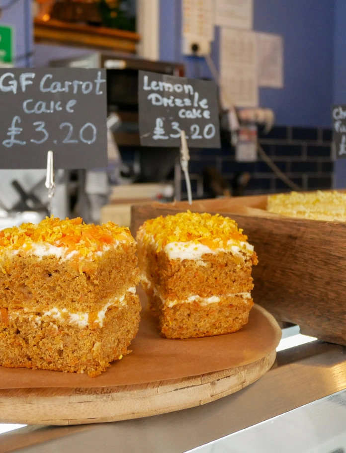 - Vegetarian and vegan options, gluten-free bread and cakes