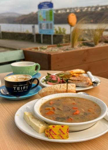 Sitting on Goodwick Parrog, Ocean Lab Café is run by Sea Trust Wales and sits next to Sea Môr – a small aquarium showcasing native marine life like rays, small sharks, lobsters, anemones and even an octopus. The space offers a glimpse into the biodiversity of Welsh waters. Indulge in all-day breakfasts, loaded jackets and sandwiches, alongside Welsh classics like rarebit and cawl.