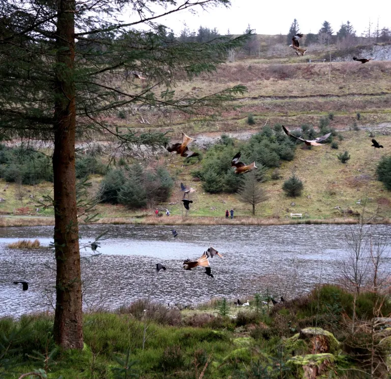 Bwlch Nant yr Arian Visitor Centre is one of the best places in Cymru to see red kites. These magnificent birds swoop in each afternoon to be fed as part of a long-running conservation programme. The all-ability Barcud Trail leads from the eco-friendly visitor centre to the edge of the lake where feeding takes place. Find out more at the Bwlch Nant yr Arian website.