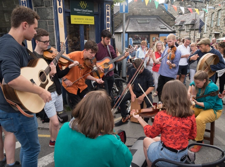 On the first weekend of the summer holidays each year, Sesiwn Fawr turns the streets of Dolgellau into a vibrant folk festival, with music, literature, comedy, and activities for children being staged across various locations in the town. The festival’s main stage is now located at the back of the Royal Ship.