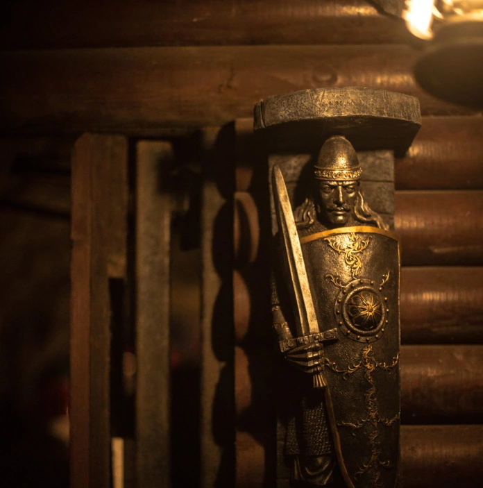 A small statue of King Arthur at the entrance to King Arthur's Labyrinth