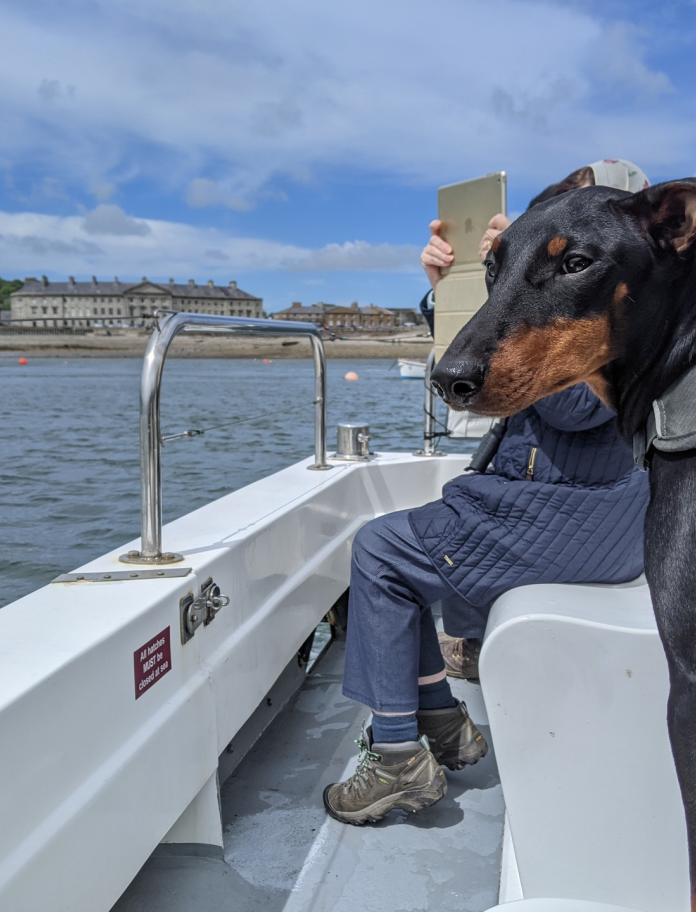 Arty enjoying a boat trip, Anglesey, North Wales