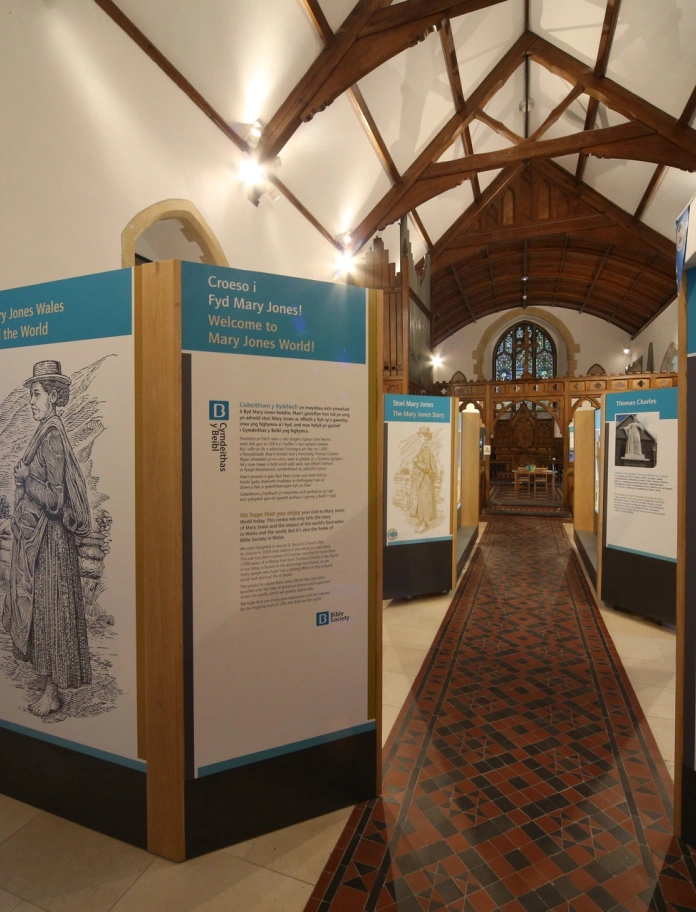 Through multimedia and interactive displays, exhibits and activities, Canolfan Pererin Mary Jones Pilgrim Centre, which is set in the old Llanycil church, tells the story of Mary's extraordinary journey, and what happened next. In short, she inspired clergyman Thomas Charles to encourage the translation of bibles all over the world – and he is buried here, in the church graveyard.