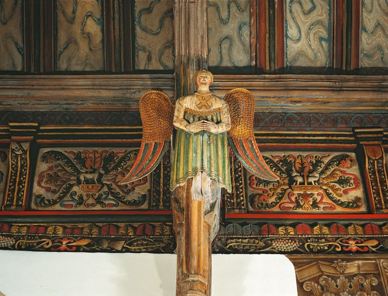 Three miles north of Bishop Morgan's Tŷ Mawr, located in the woods above Gwydir Castle, you'll find a chapel that looks deceptively humble from the outside. Venture in, and you'll discover an incredible rainbow of colour, including a ceiling decorated brightly with angels and cherubs, depicting the Creation, Trinity and last Judgement.