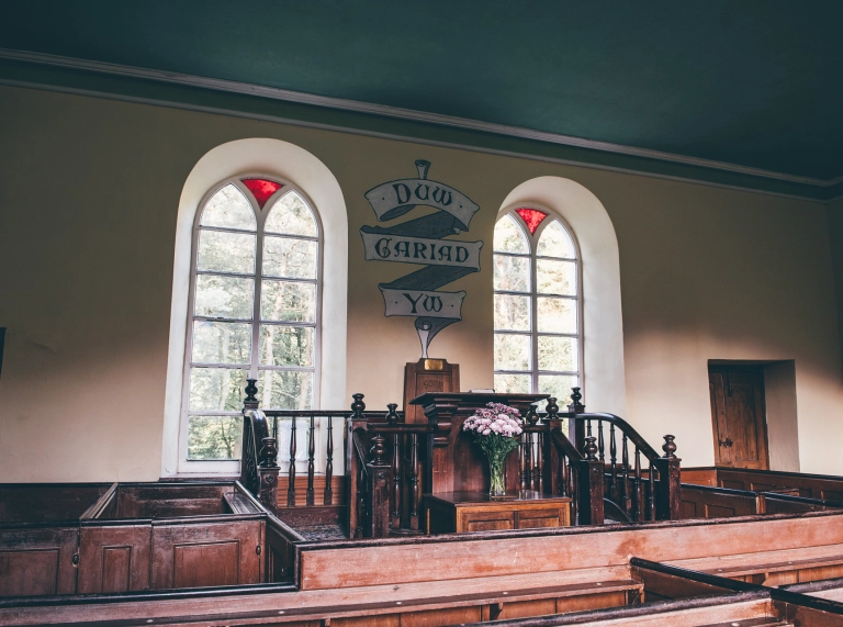 Fully restored in 1995 as a centre for pilgrimage and prayer, the chapel was built for John Hughes, the famous Methodist minister who preached and lived at the Chapel until his death in 1854. He and his wife Ruth were instrumental in recording the hymns of Ann Griffiths after her death in 1805, the famous hymn writer who attended chapel here. The John Hughes Memorial Chapel is open for visitors Tuesday, Wednesday and Thursday afternoons Easter to September.