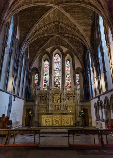 If you're interested in Wales' military history, the 14th century Havard Chapel is also the regimental chapel of the South Wales Borderers. Their colours from the Zulu Wars are hung proudly here.