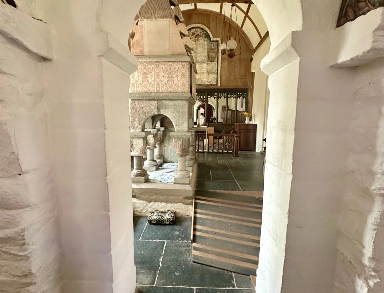 The shrine has an astonishing history. The congregation dismantled it during the Reformation to preserve it from looters, hiding stones in the church walls and lychgate. Complete again today, it mixes Celtic motifs with Romanesque designs to stunning effect. The church been a site of pilgrimage ever since. Services are held here on Sunday afternoons in the summer, always followed by tea and cake.