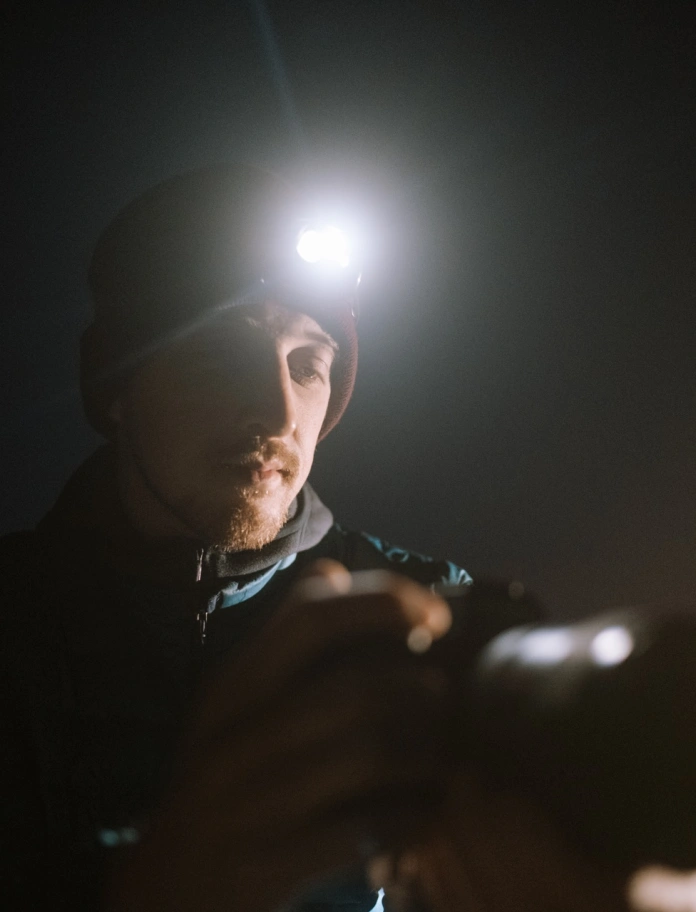 If the scene you're trying to capture is too dark, you can use your head torch to illuminate an area and hopefully get better detail in the foreground.