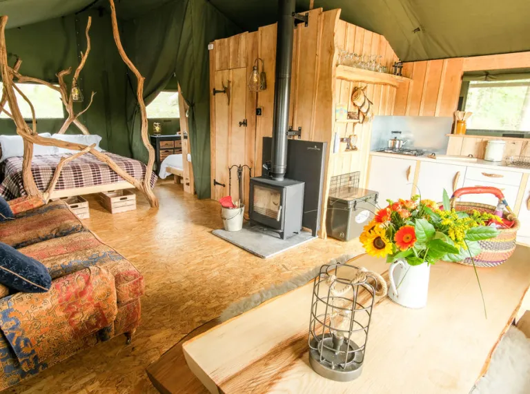 Family-friendly Hillside Glamping is right in the middle of the beautiful Gower Peninsula in West Wales. The fully-equipped, luxurious safari tents are near some fabulous surfing beaches and places to explore. One tent is accessible for disabled people - please contact Hillside for more info. The large, wood-fired hot tubs are sheltered, so you can use them in all weathers. There's a daily wood allowance for the stove and fire-pits as well.