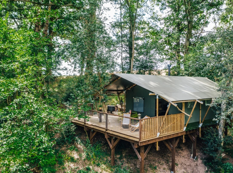 Fancy floating above the woodland floor in a luxurious, fully equipped safari tent, overlooking the beautiful River Wye? By the Wye Treetop Glamping, in Hay-on-Wye, is a relaxing campsite for families, couples and groups. It's off-grid, and designed to have minimal impact on the environment. Each safari tent has private outside decking with a firepit - perfect for chilling out in the evening. Inside you'll find exquisite hand-crafted beds, en-suite power showers and flushing loos. You can also order tasty food hampers full of local produce to cook on the log stove, or on the barbeque if you don't fancy eating out.